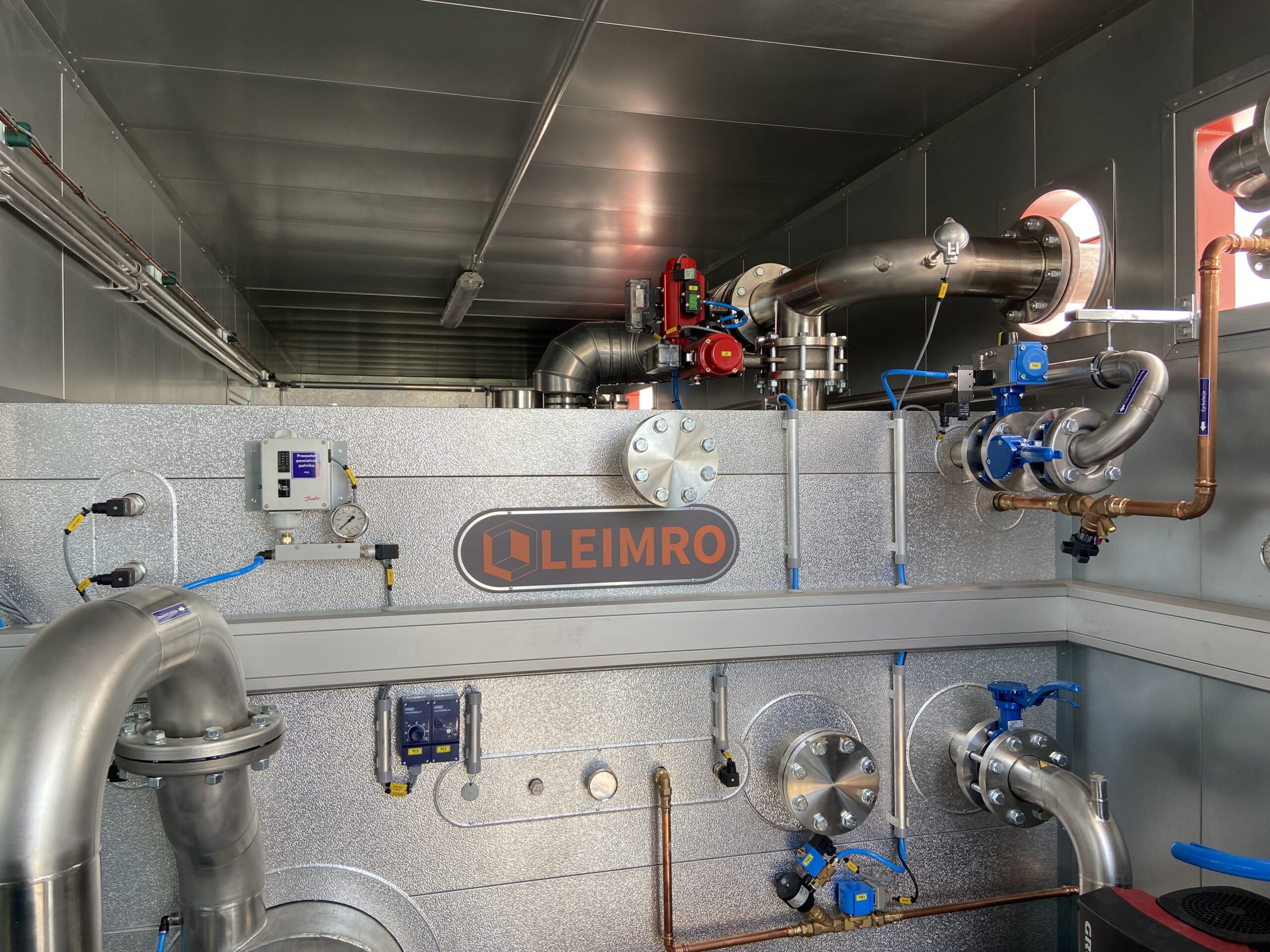 Containerized technical module housing heating and cooling systems with engineered ventilation and equipment integration.